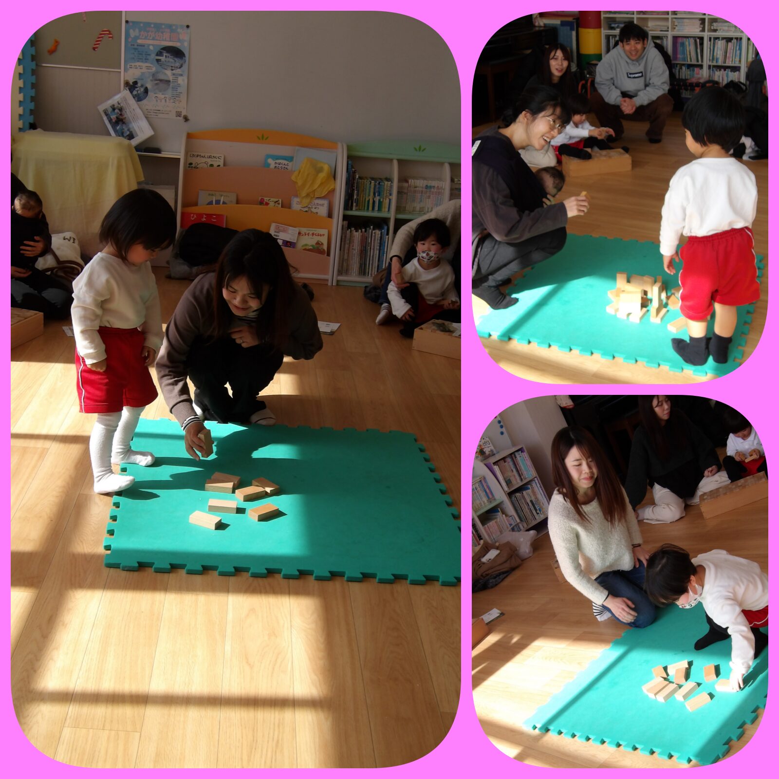 親子レクリエーションではお母さんたちと積み木をしました。一緒にできて嬉しかったね😊