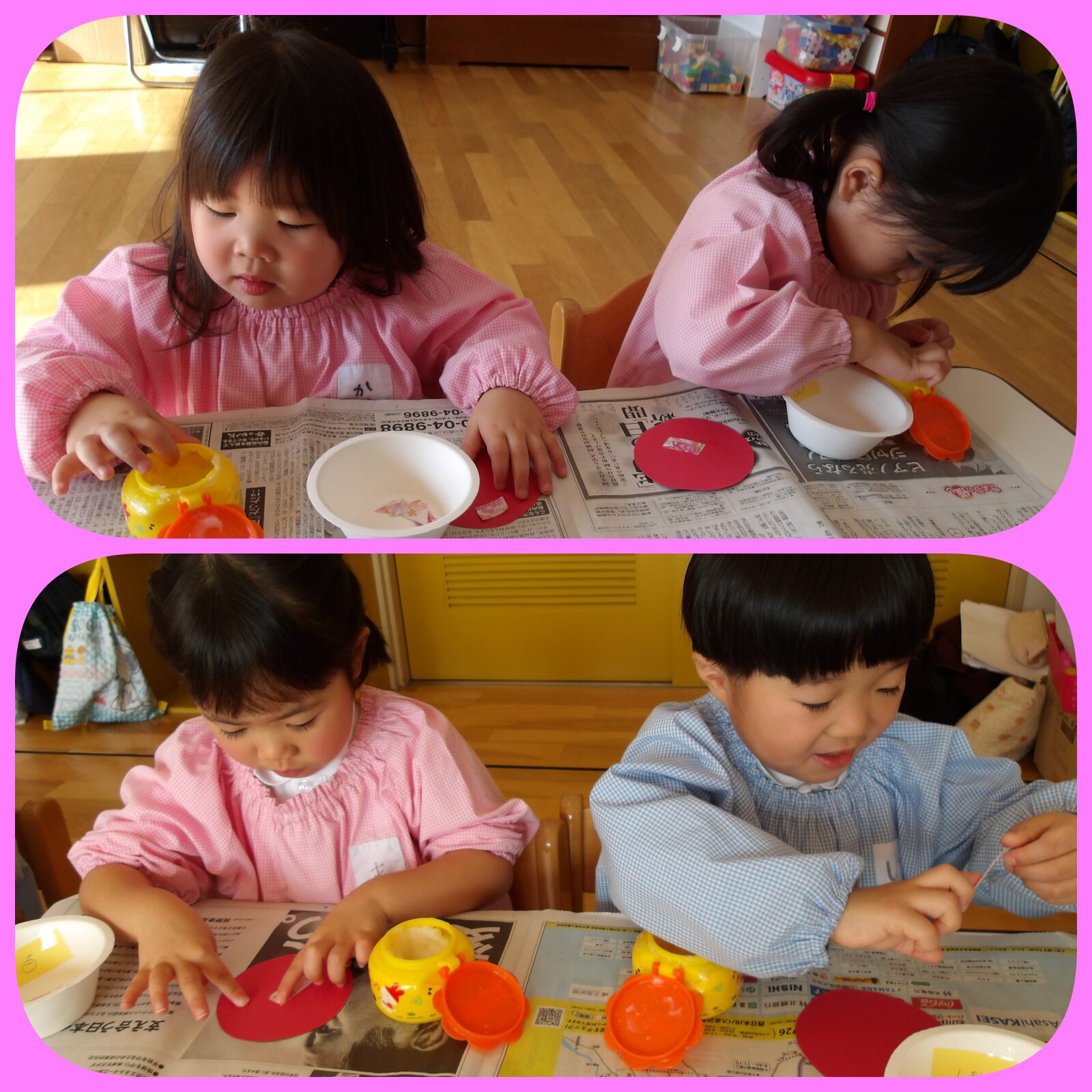 もうすぐひな祭り🎎ひな飾り作りもしました。糊の使い方もみんな上手になりました🧡