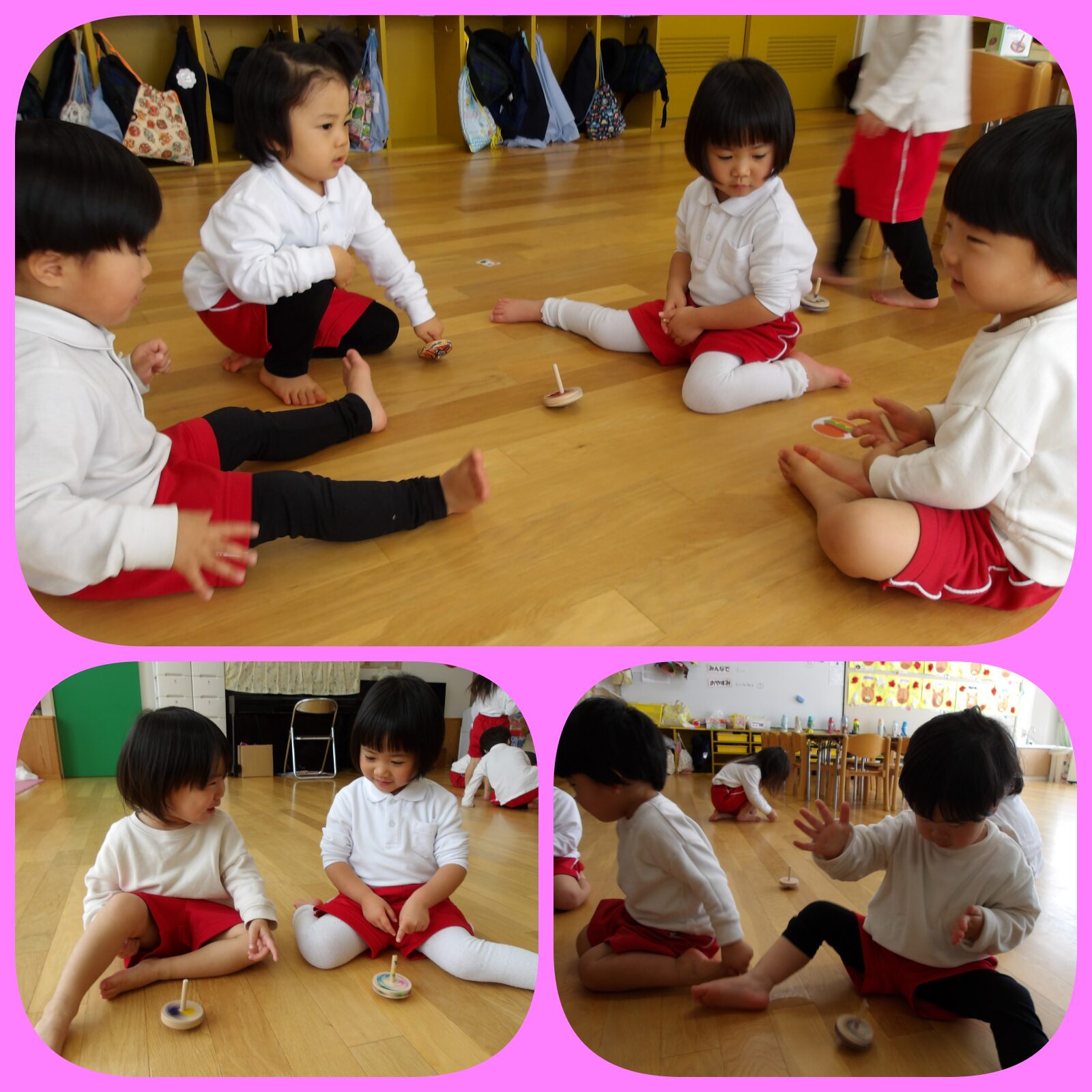 「コマできるよ!」「まわったよ~」「コマがぶつかってる!」とみんな夢中になってました。