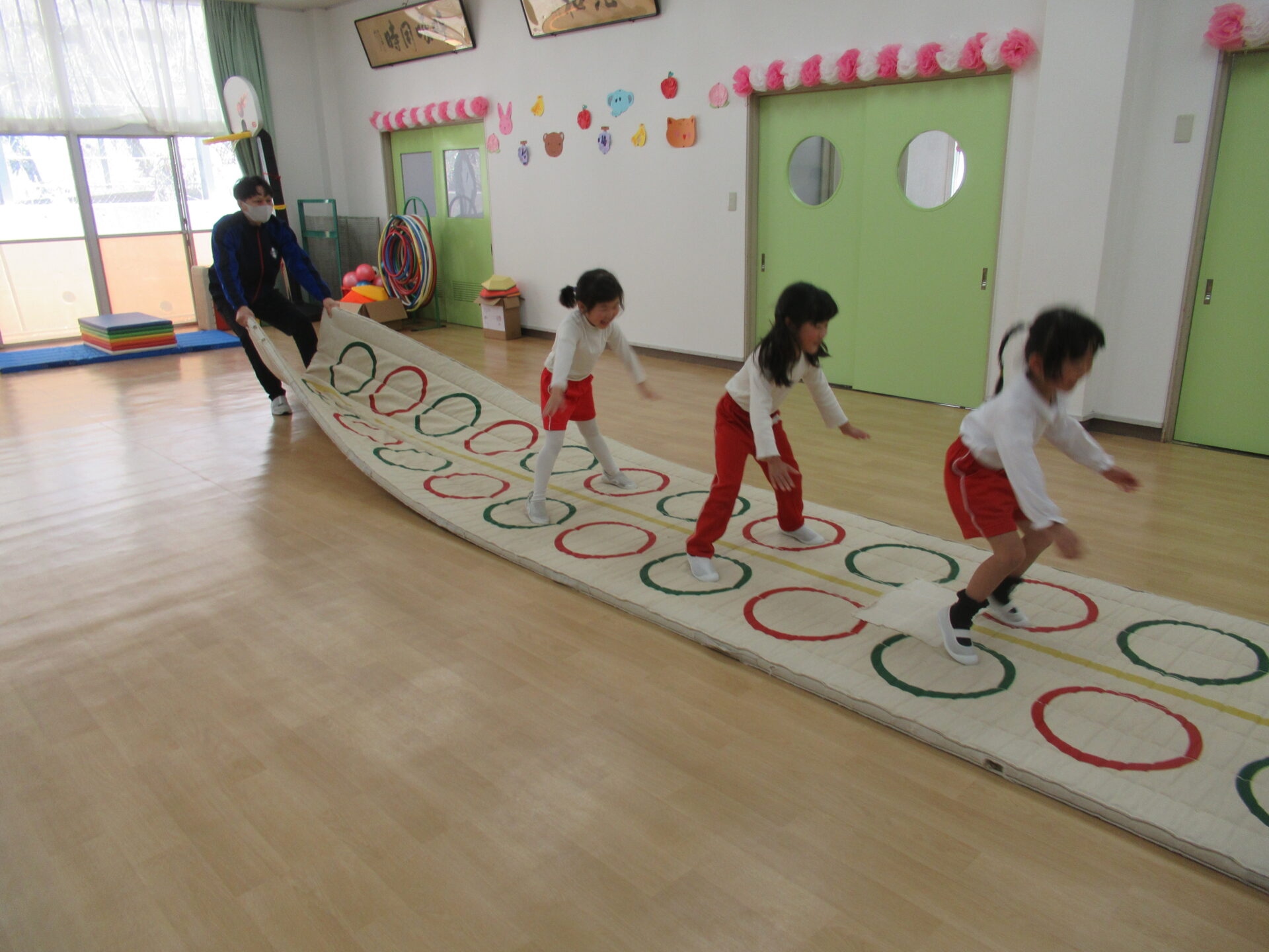 マットの上でバランスゲーム。倒れないように気をつけて…