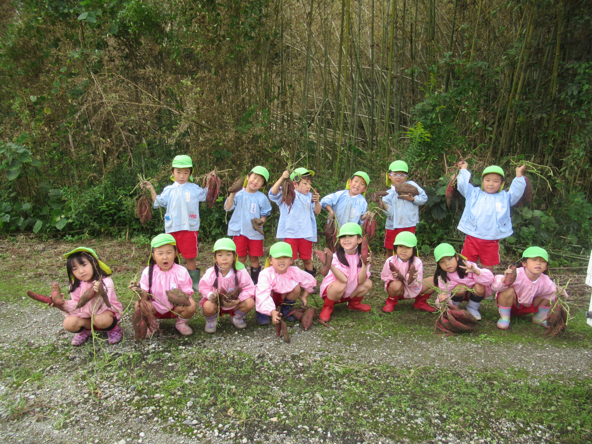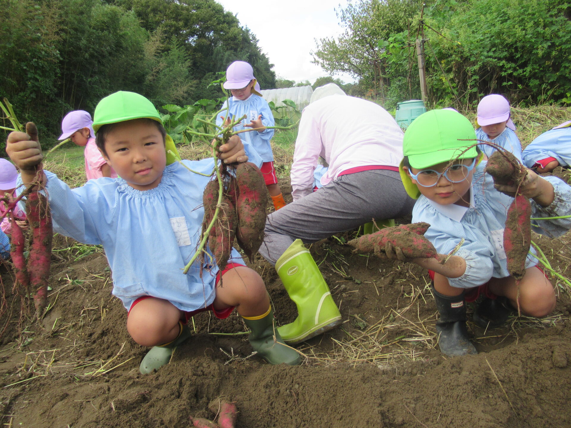 お芋を持って、ハイチーズ😄 こんなにたくさんとれたよ~😆🍠
