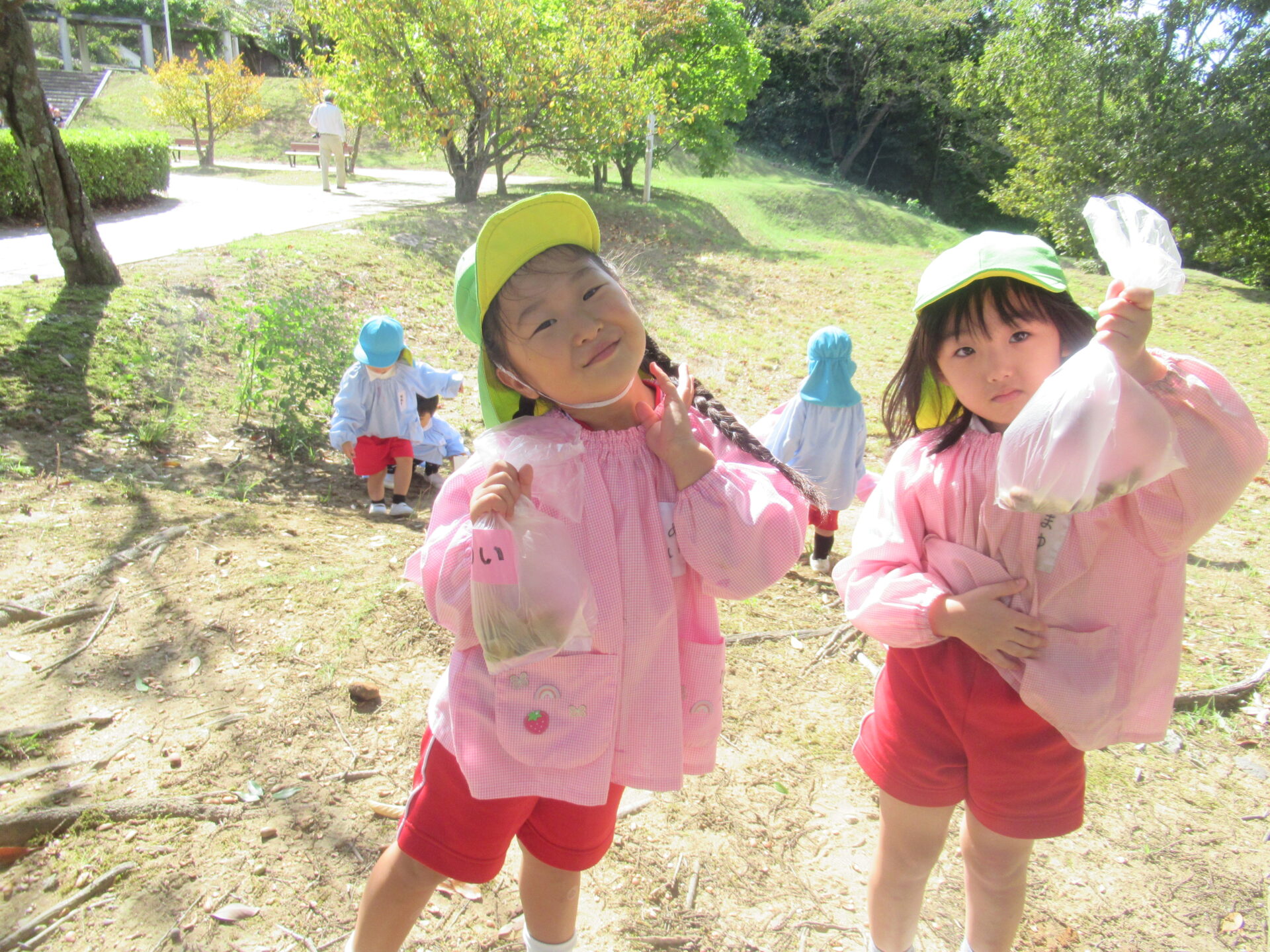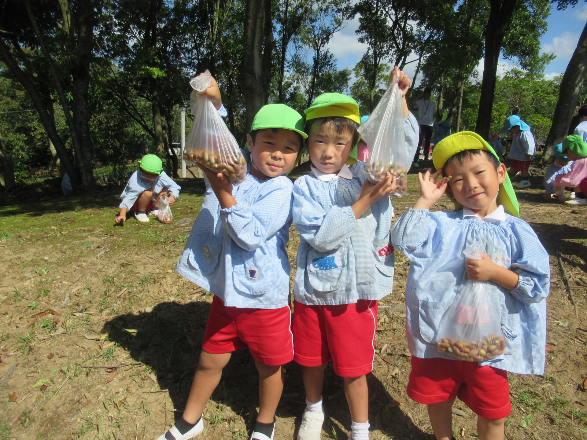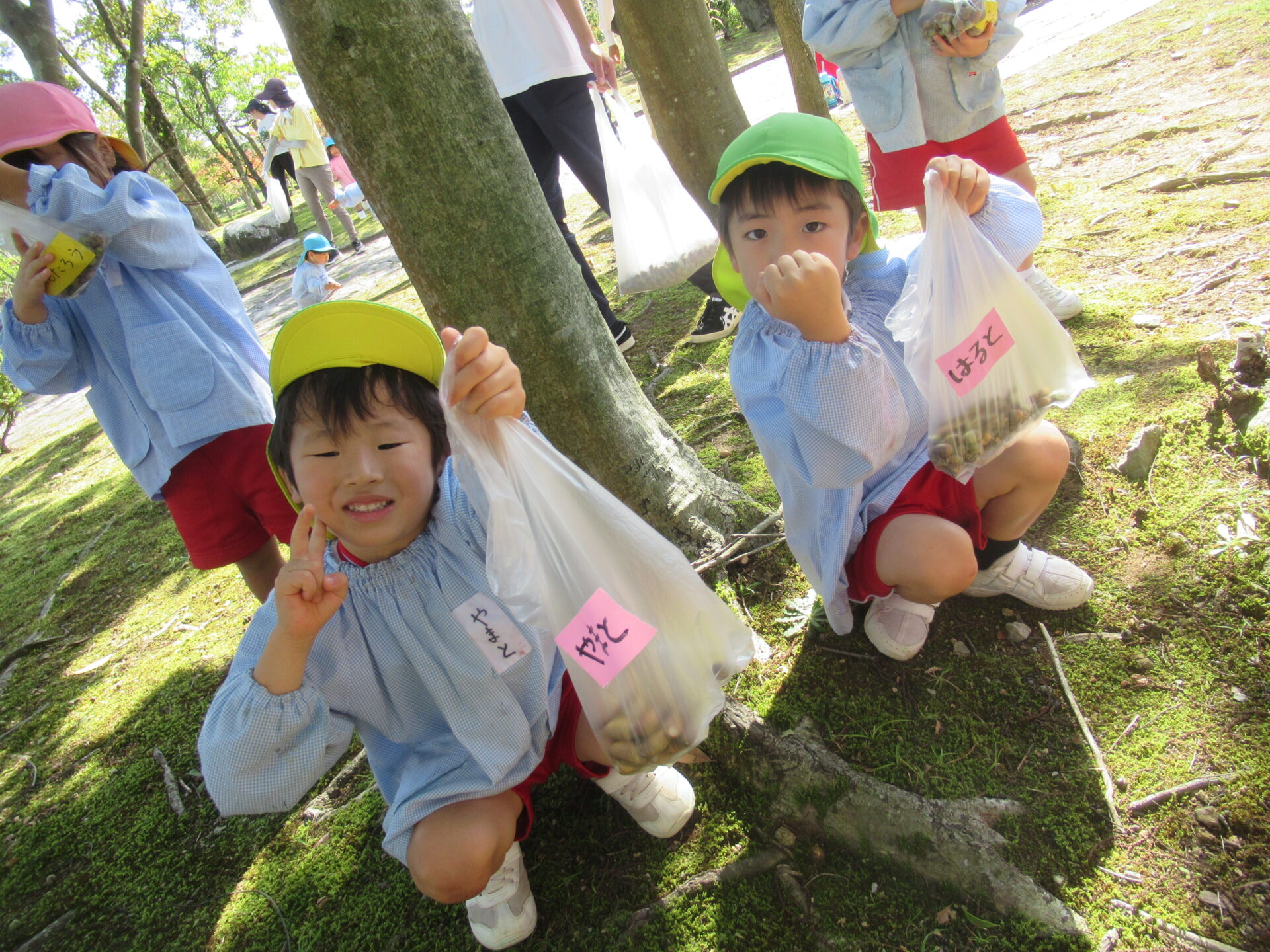 次の日は、どんぐり拾いへ~🚌 中央公園まで行って来ました! 袋が破れそうになるくらい拾ったお友達も😁🎵