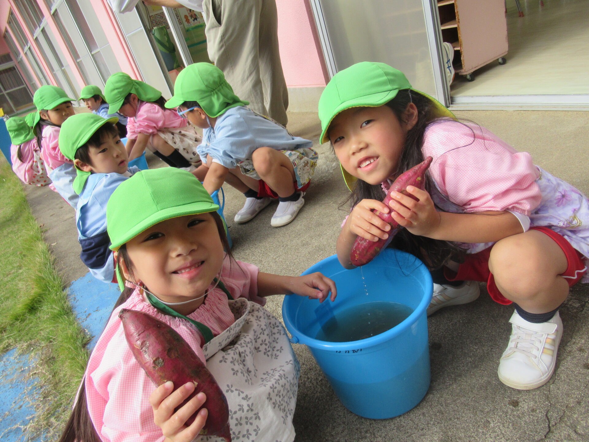 焼き芋会の準備のお手伝い😄 まずは、お芋を洗って~、、、🍠