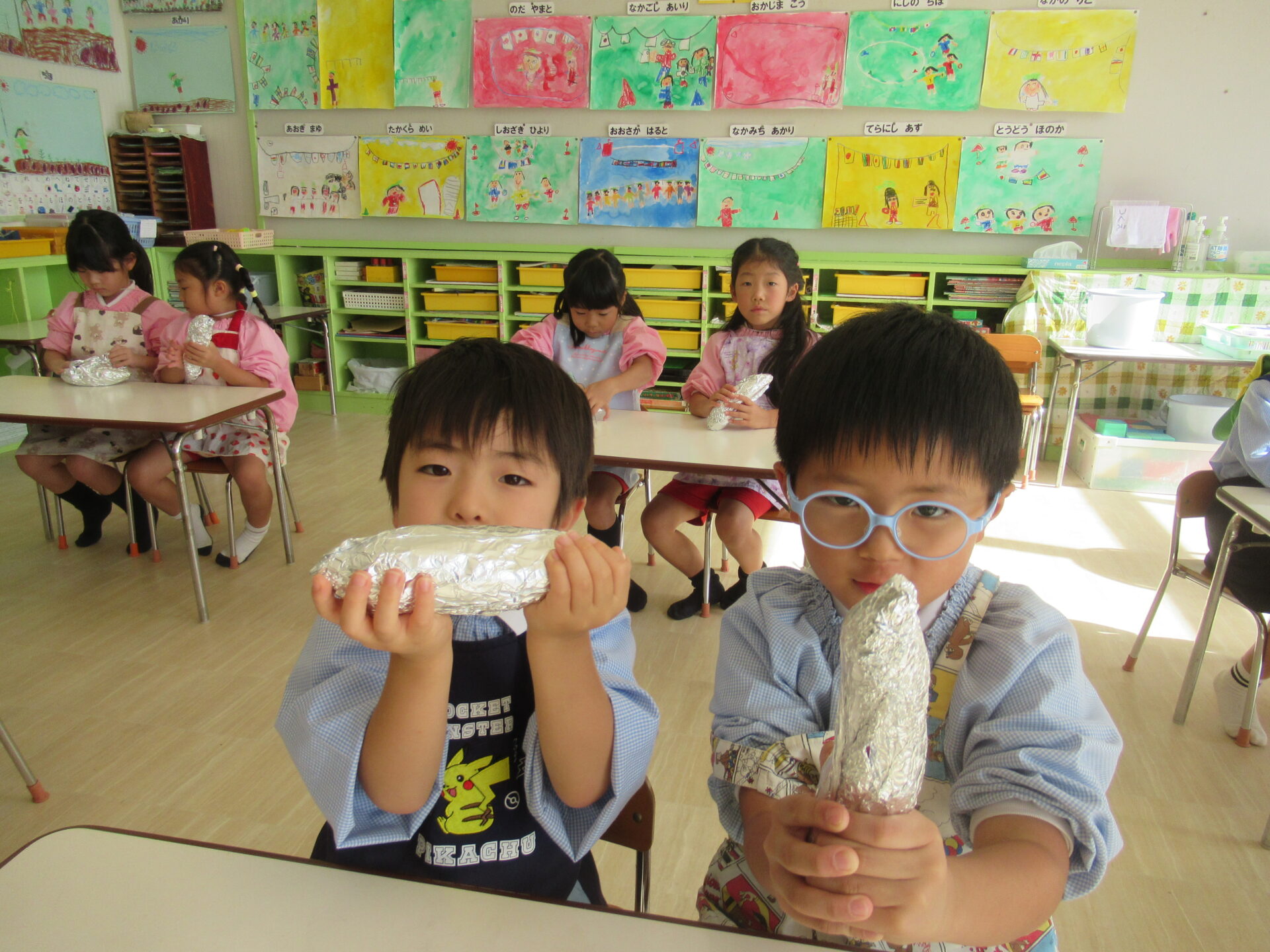 アルミホイルで、お芋を包みます🍠