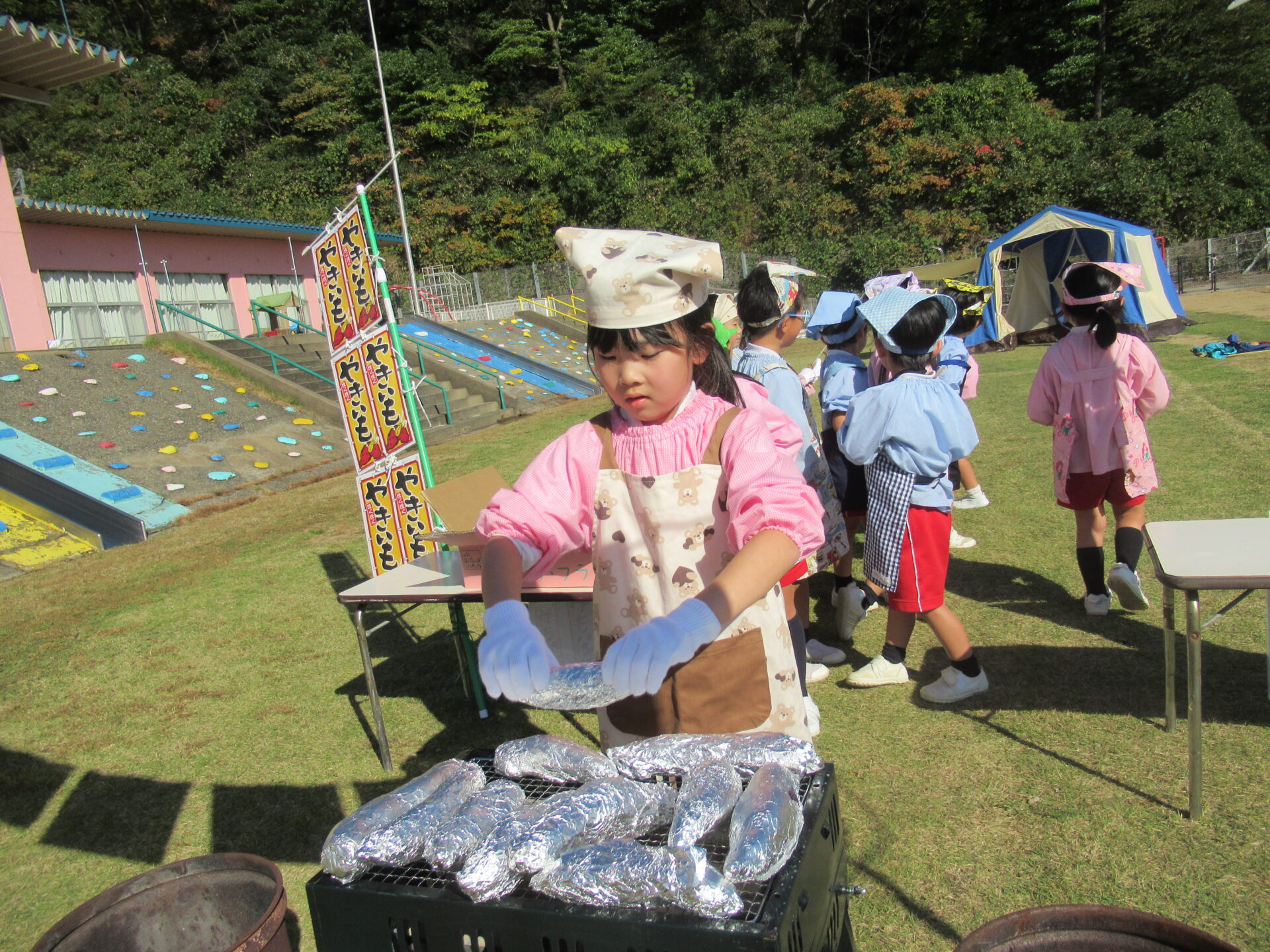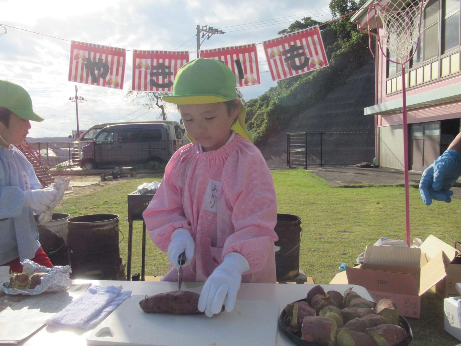 焼き芋屋さんになって、お芋を切りました🔪🍠