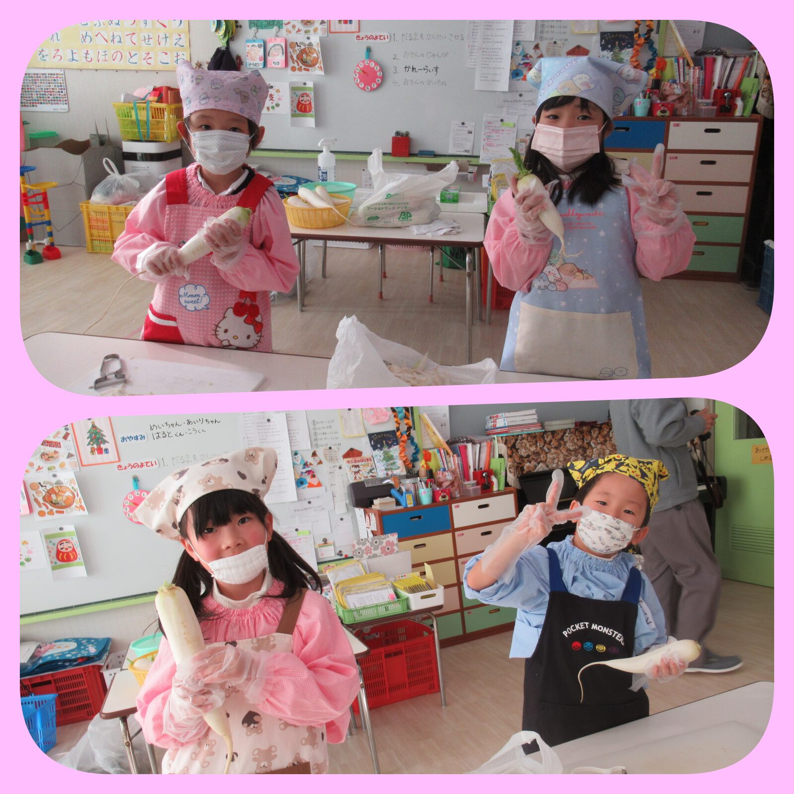 大根の皮をむいて切るお仕事をしました! ピーラーや包丁を使うのはドキドキしたね😆