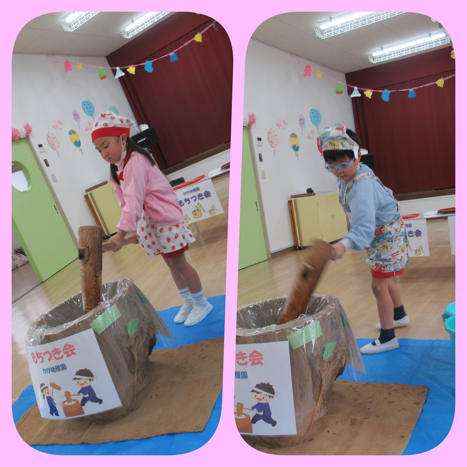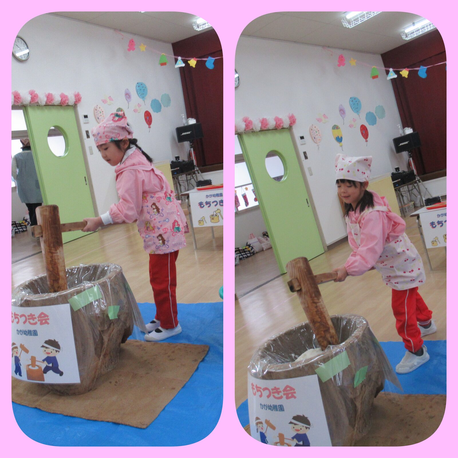 餅つき会では、さくら組は「6回」つきました! ペッタンペッタン美味しいお餅にな~れ~~~😍✨