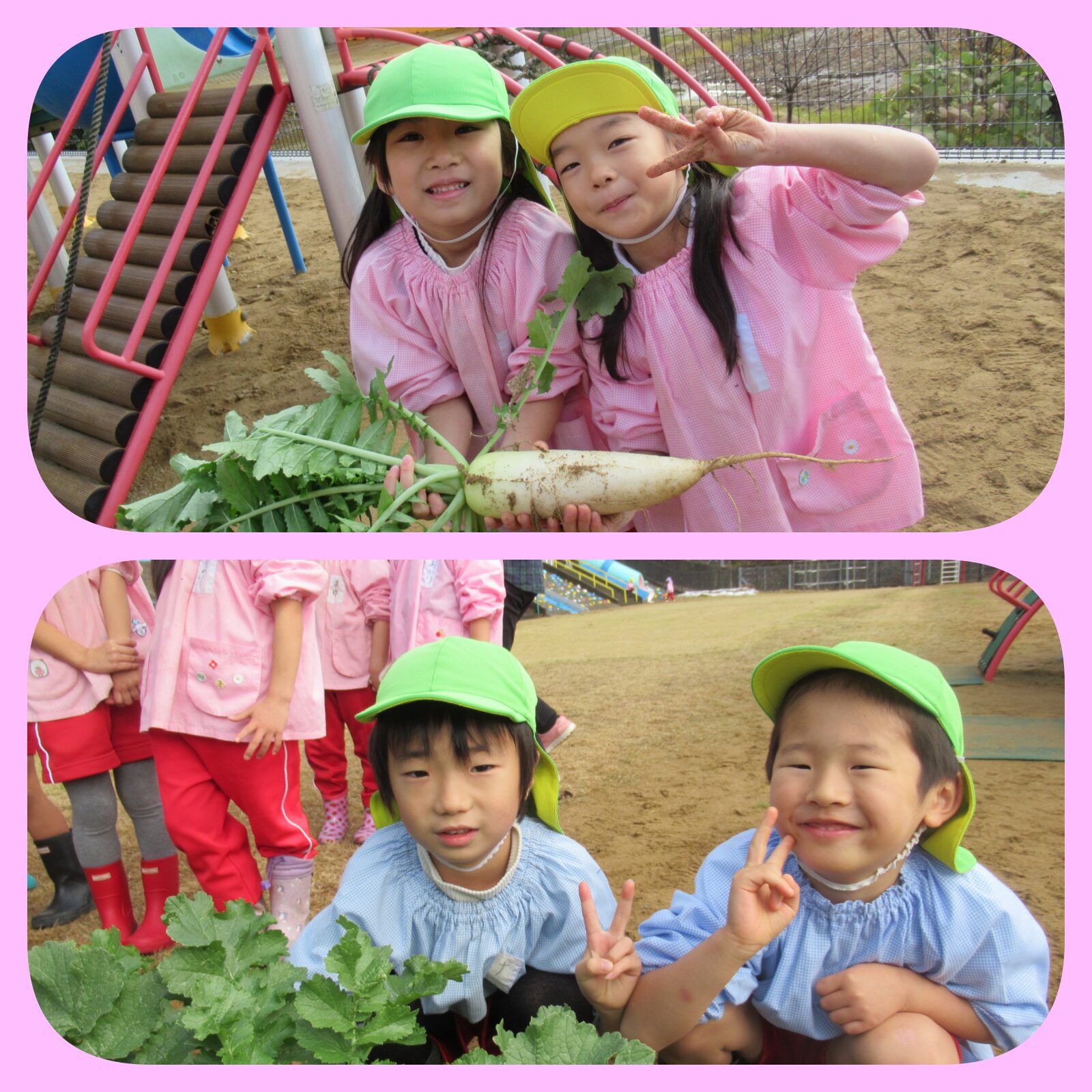 みんなで育てた大根が大きくなったよ!! 頑張って掘りました😄