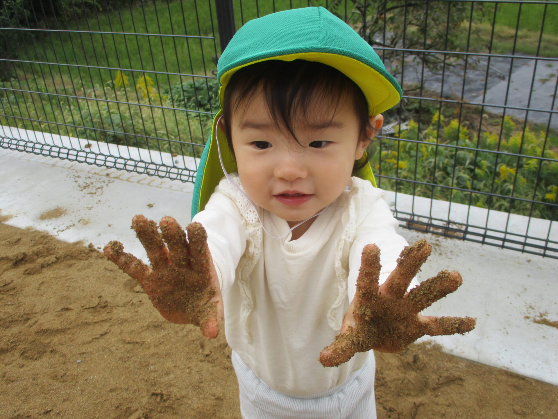 「せんせ~!!見て~!!」とお砂遊びを楽しんだおててを