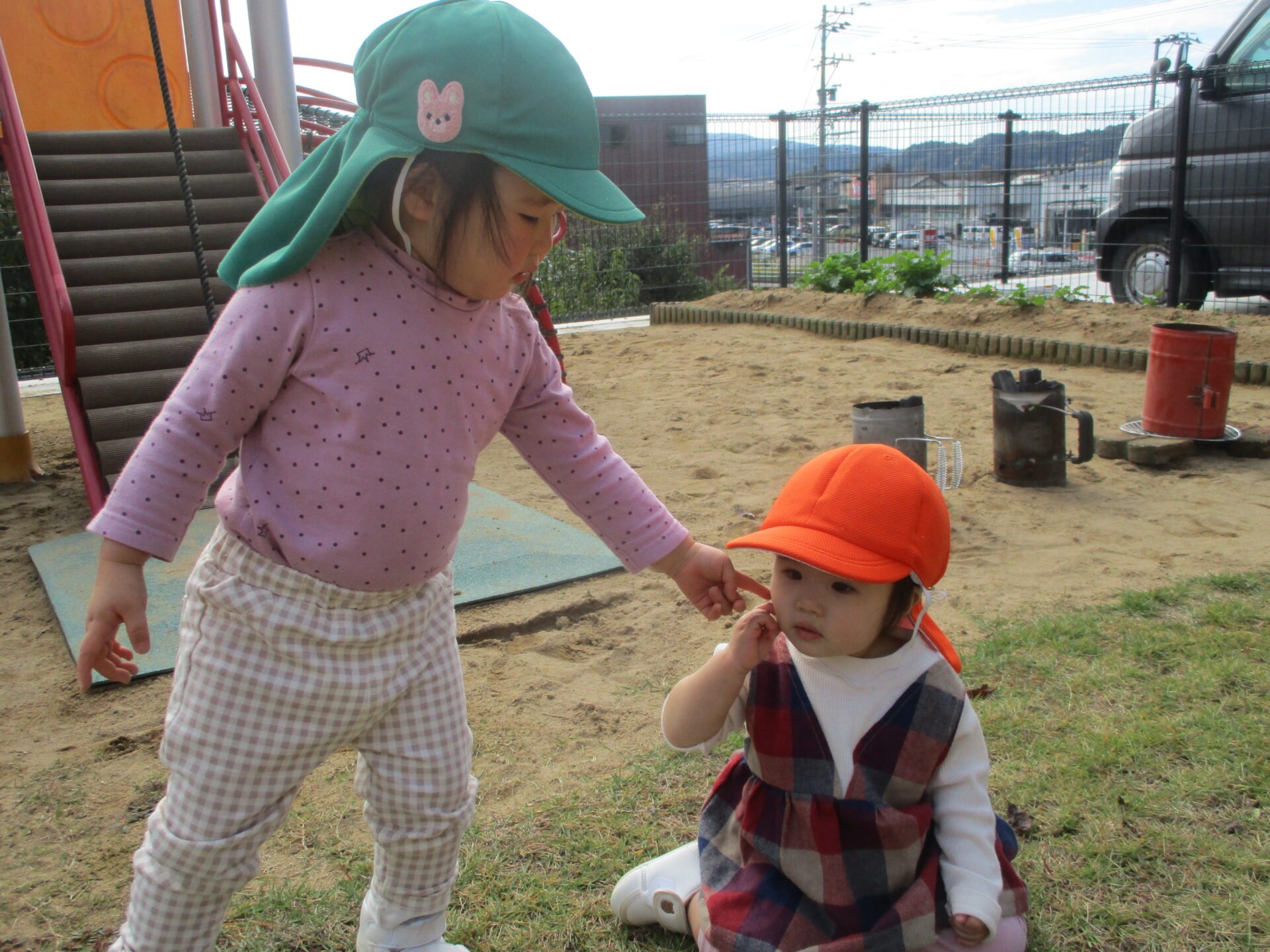 ほっぺたを ツンツン ”一緒にあーそーばー!!” と
