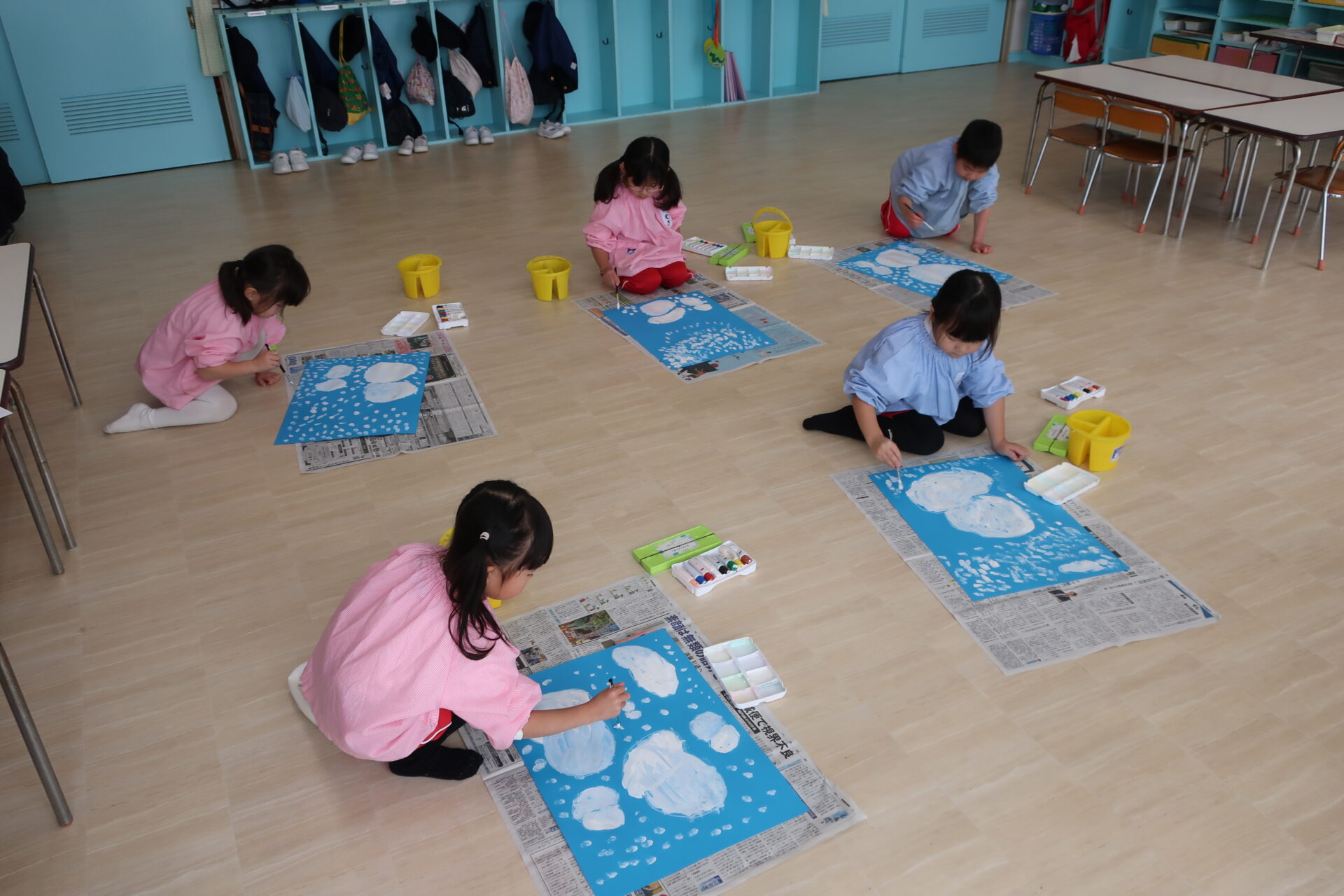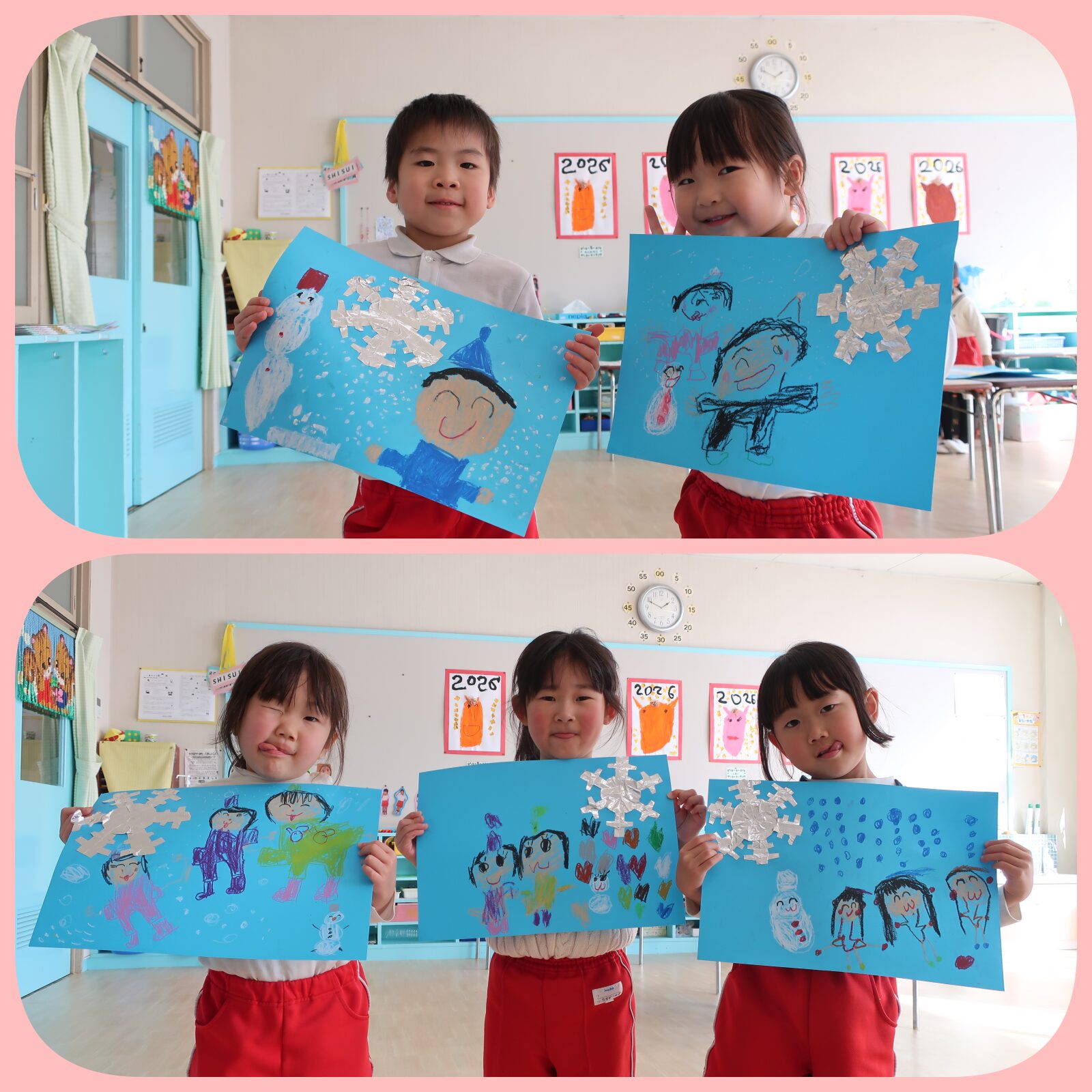 お部屋に戻ってからは雪を見ながら絵を描きました。