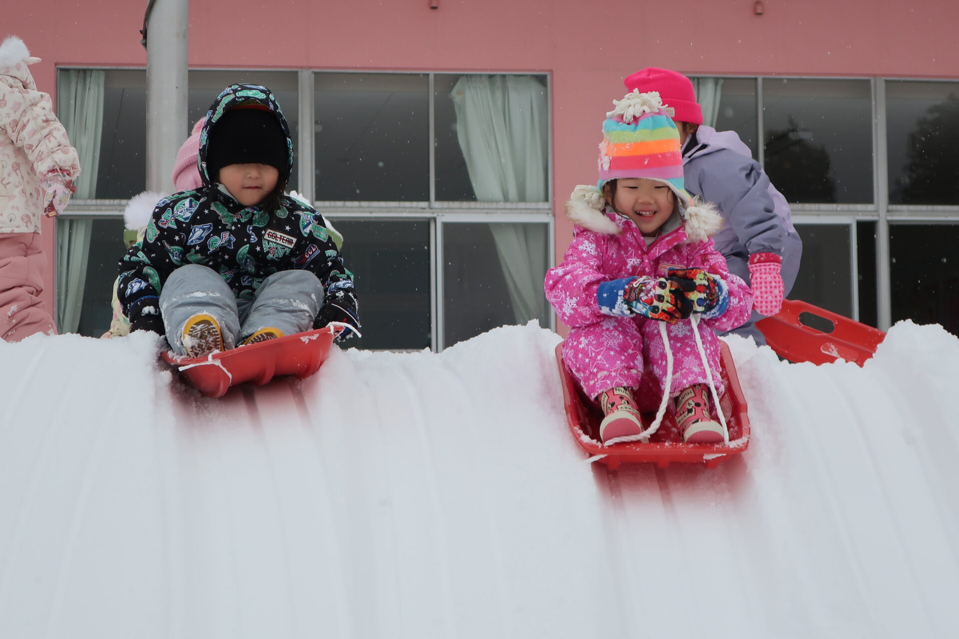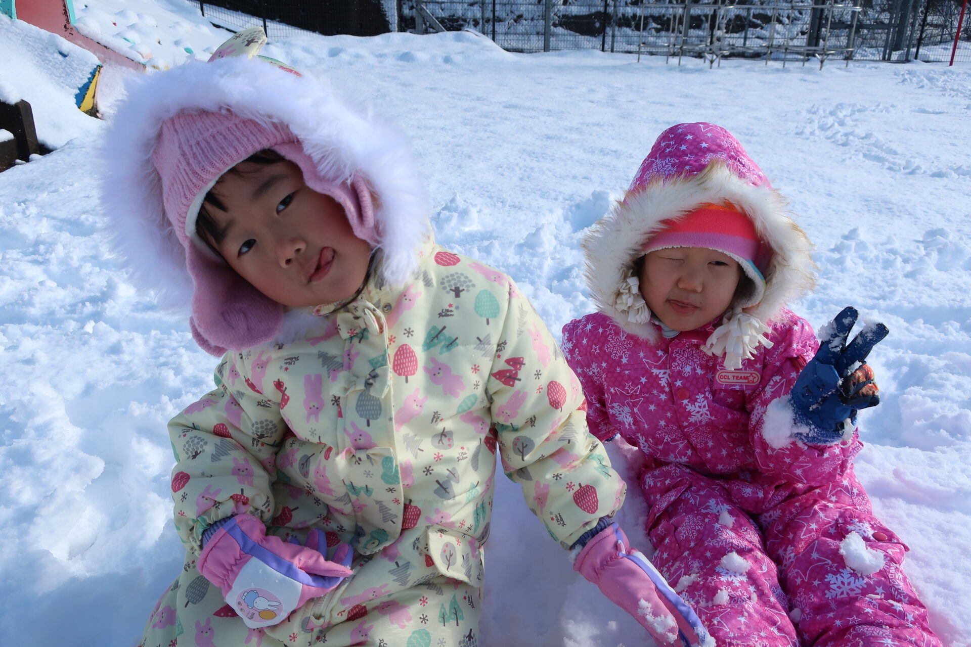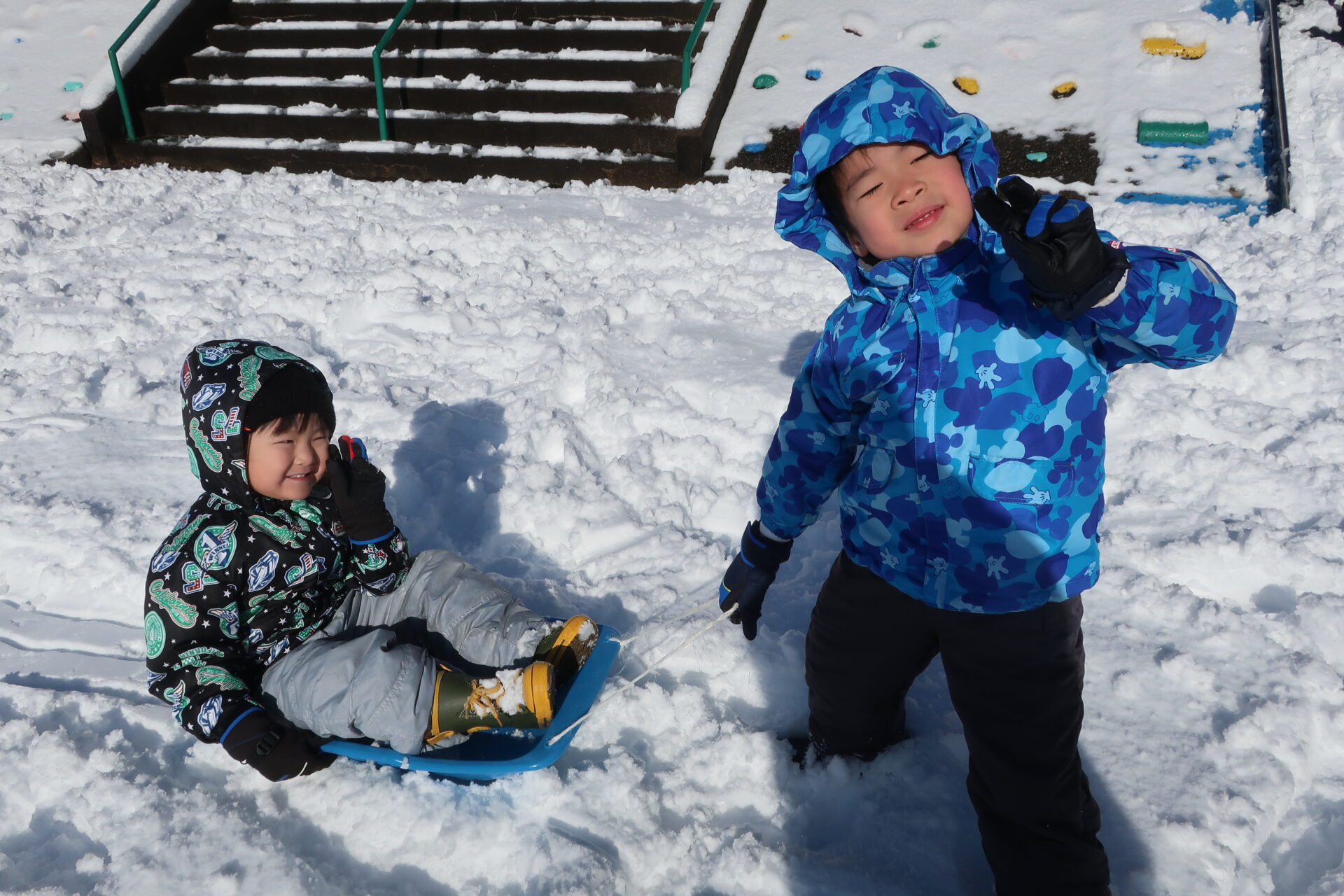 お外には雪がたくさん積もって嬉しそうな子どもたち⛄