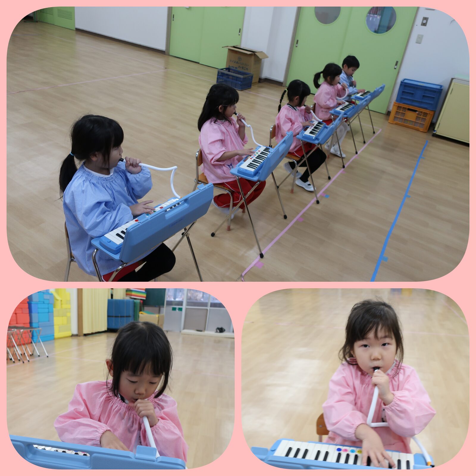 音楽教室ではピアニカで『とんとんとんとんひげじいさん』の歌を練習しています🎵