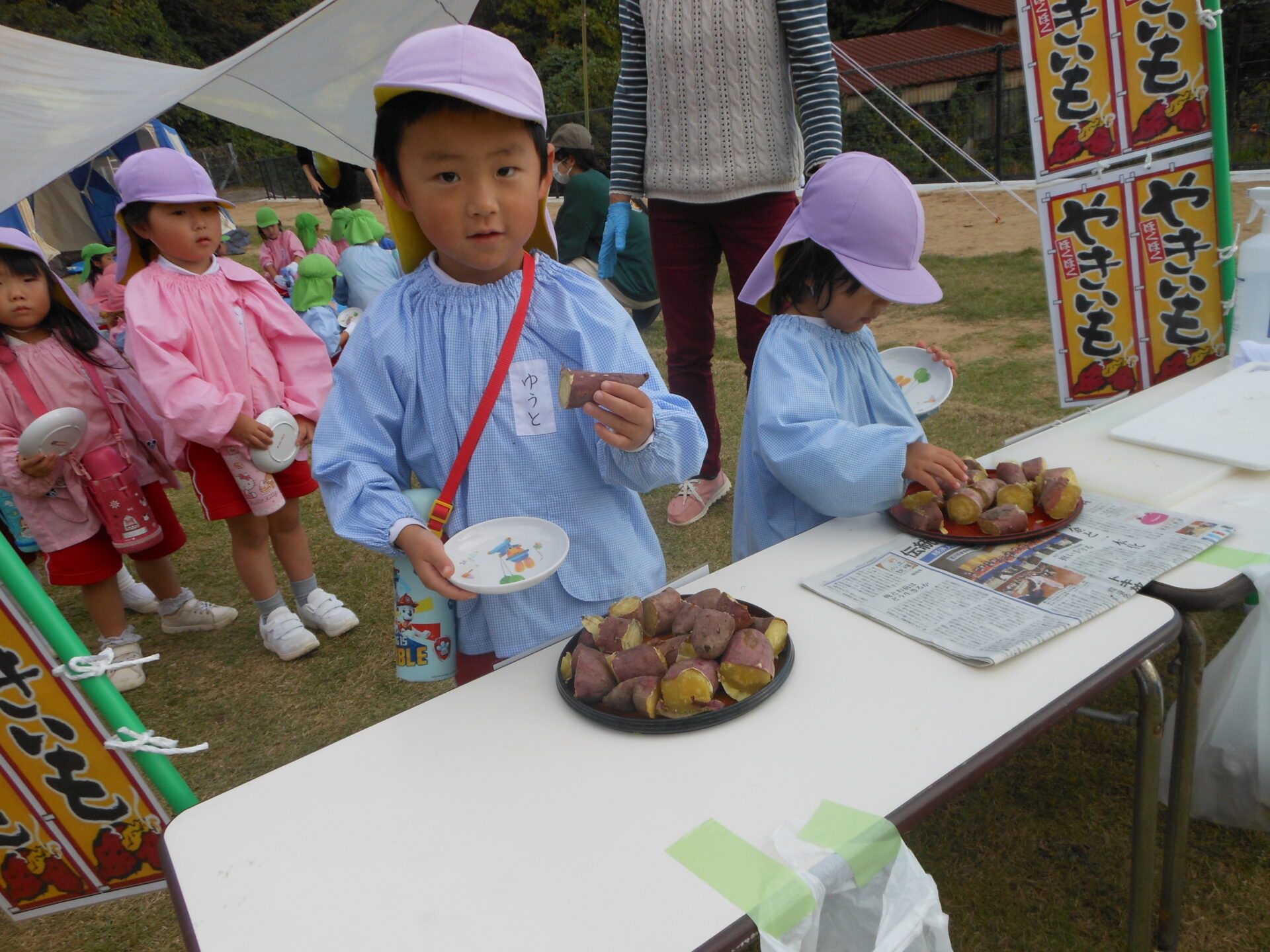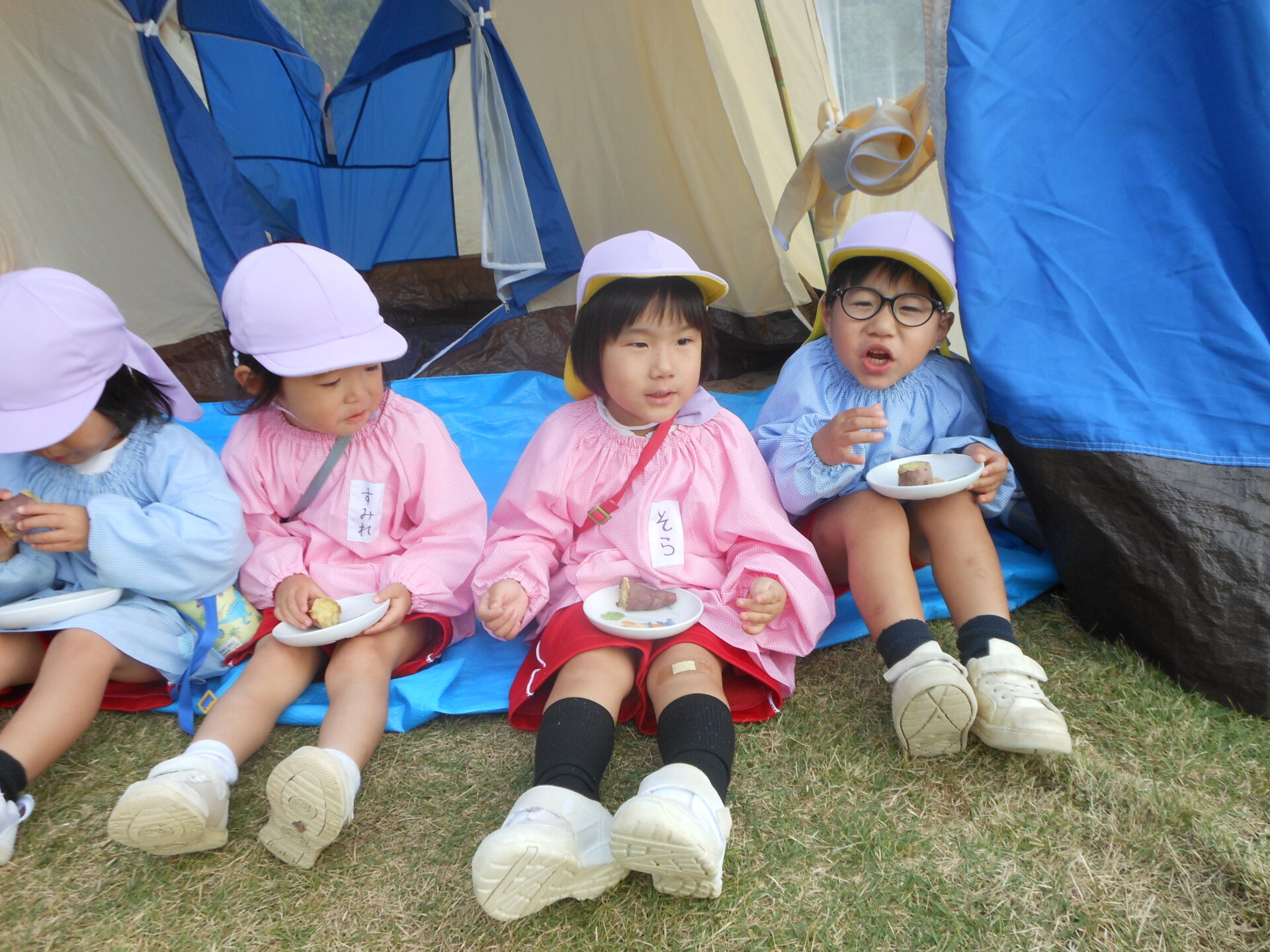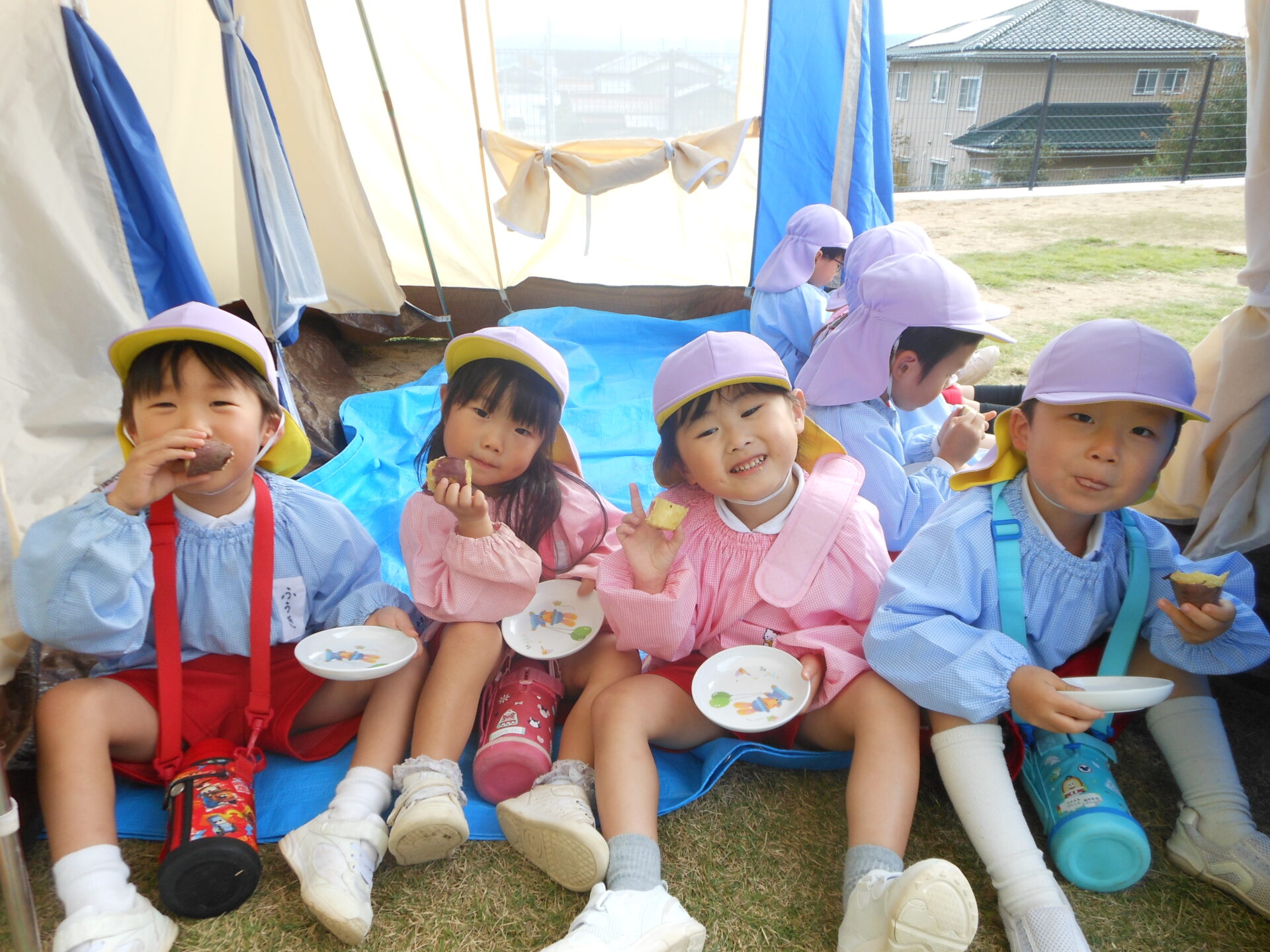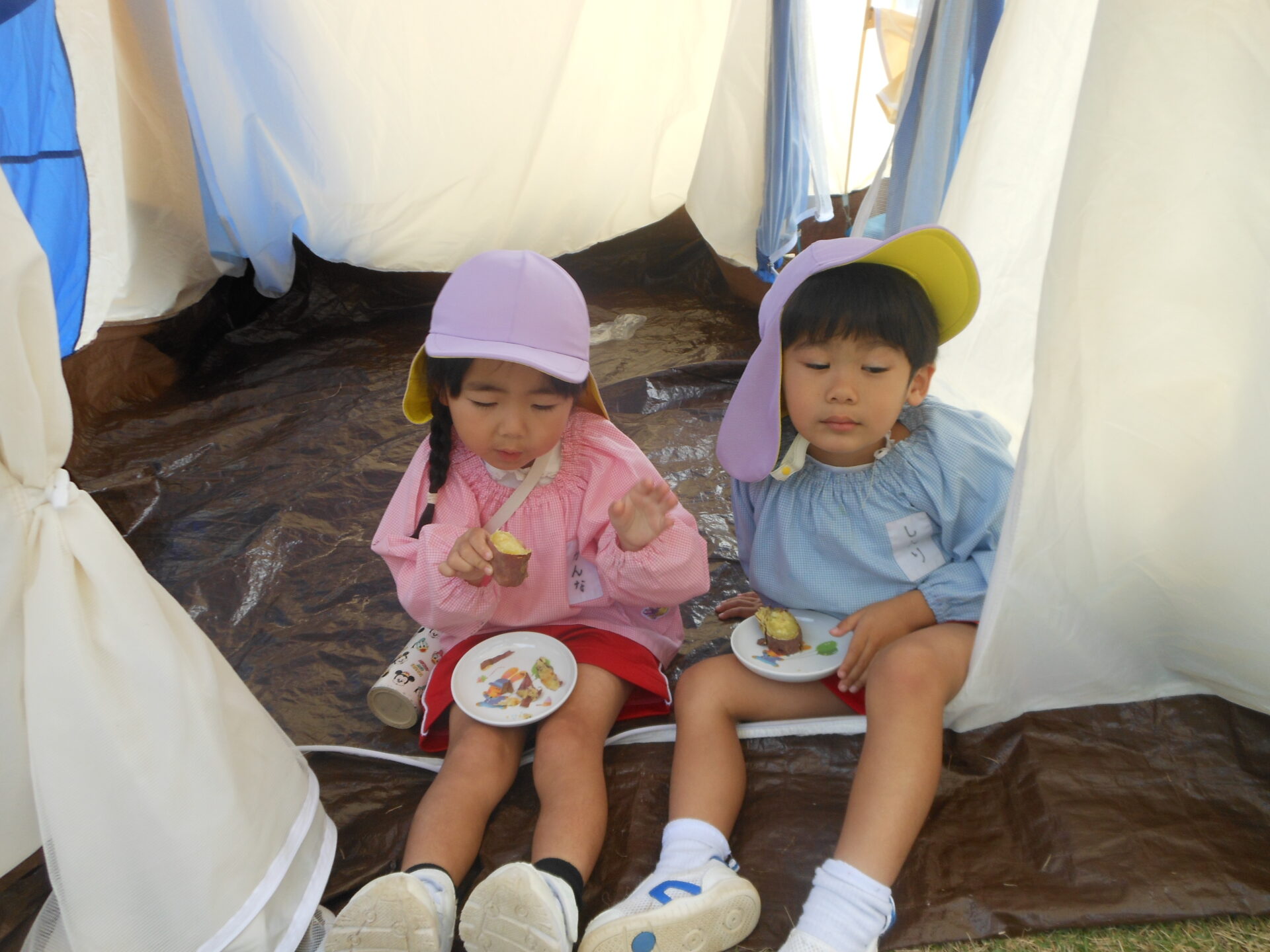 秋晴れの下~お芋やさん🍠が開店~テントで食べた熱々のお芋とってもおいしかったね💛「また🍠買ってくる~」とおかわりもいっぱい食べて大満足でした💕