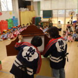 そして今回は、消火の体験です。「幼稚園版キッザニア??」