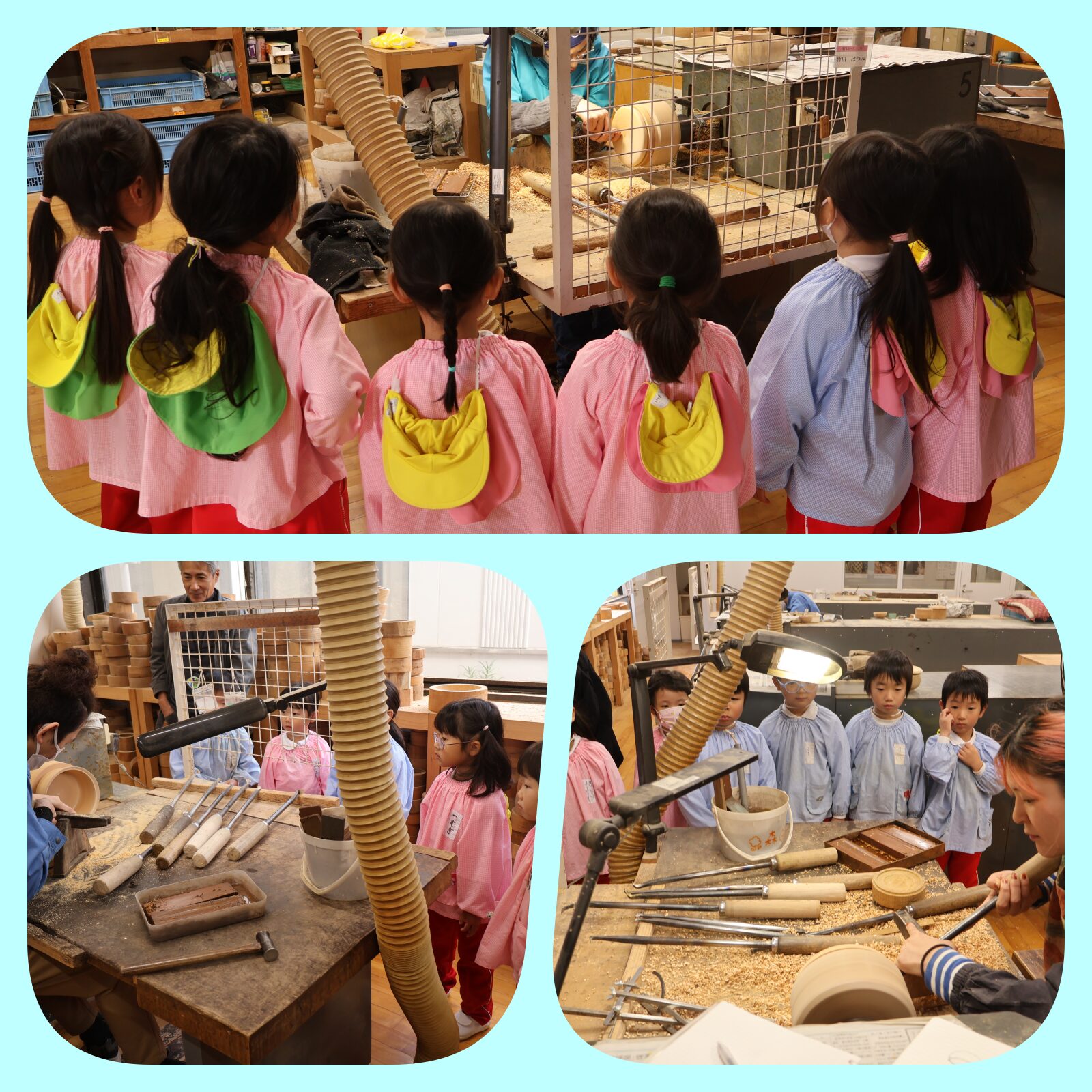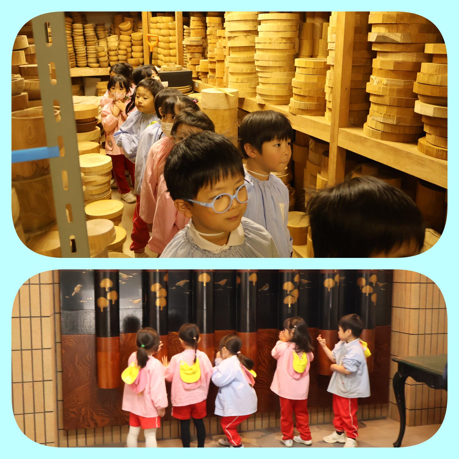 保管倉庫も見学 たくさんの待機待ち素材と山中塗の装飾です。
