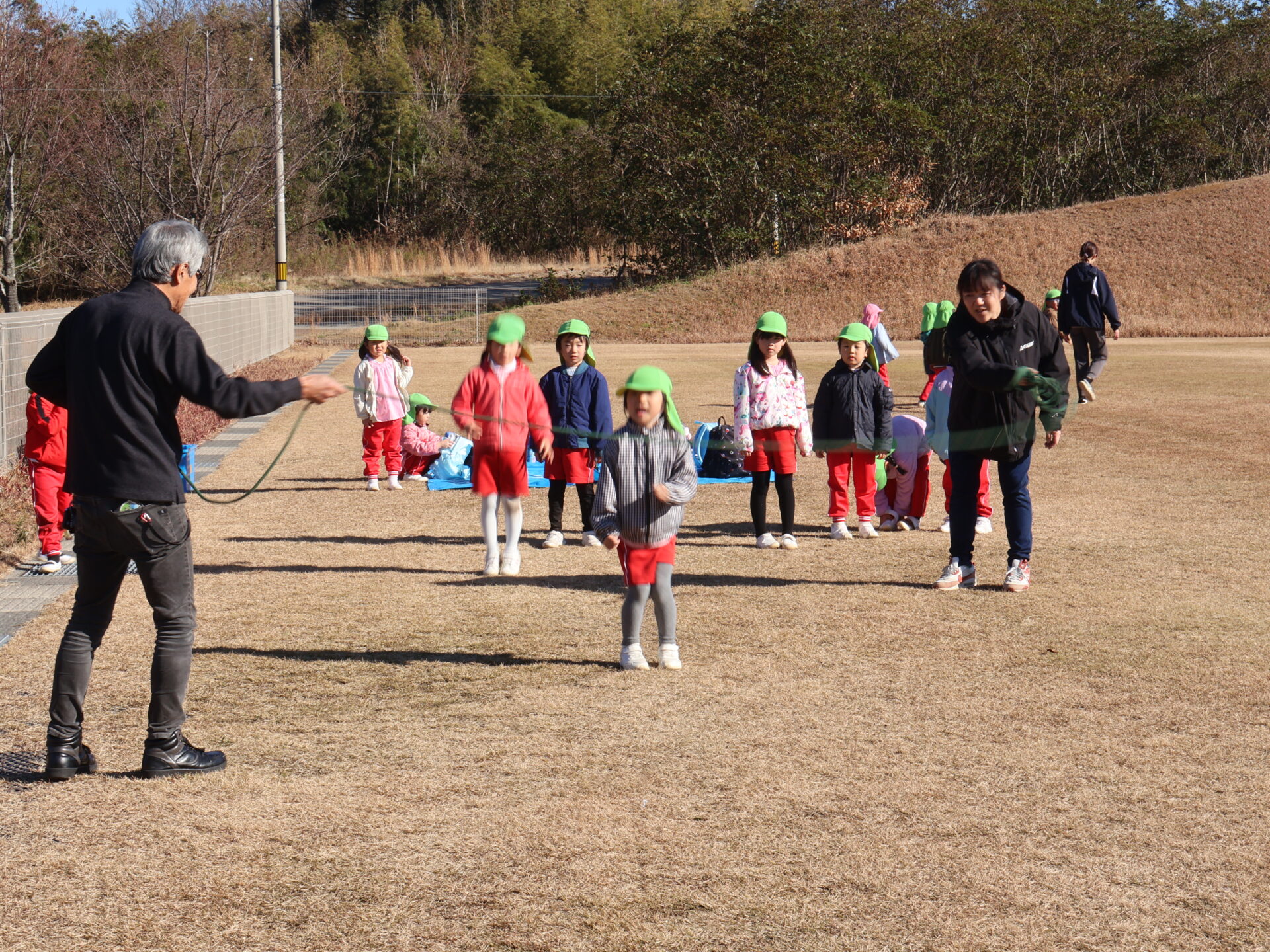 大縄跳びやゴールキックも