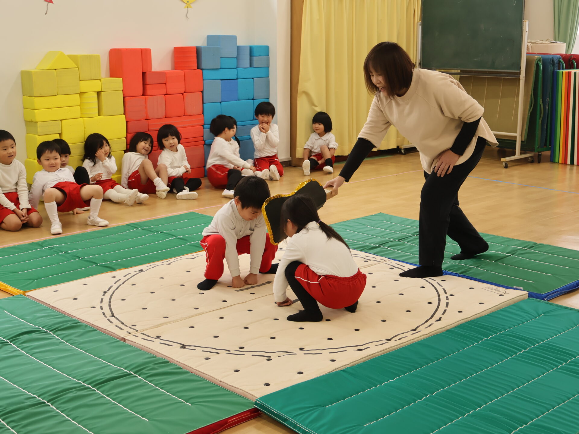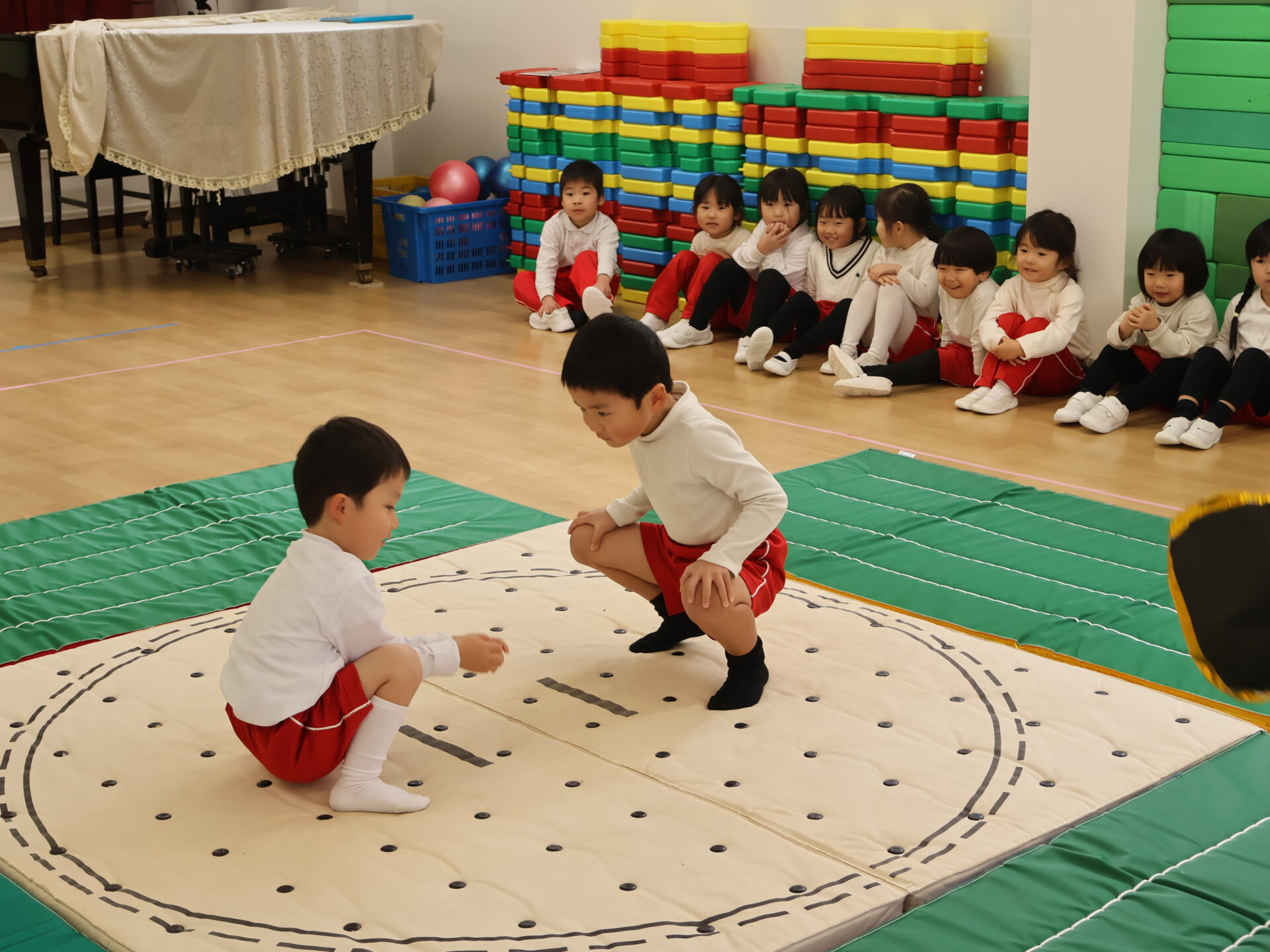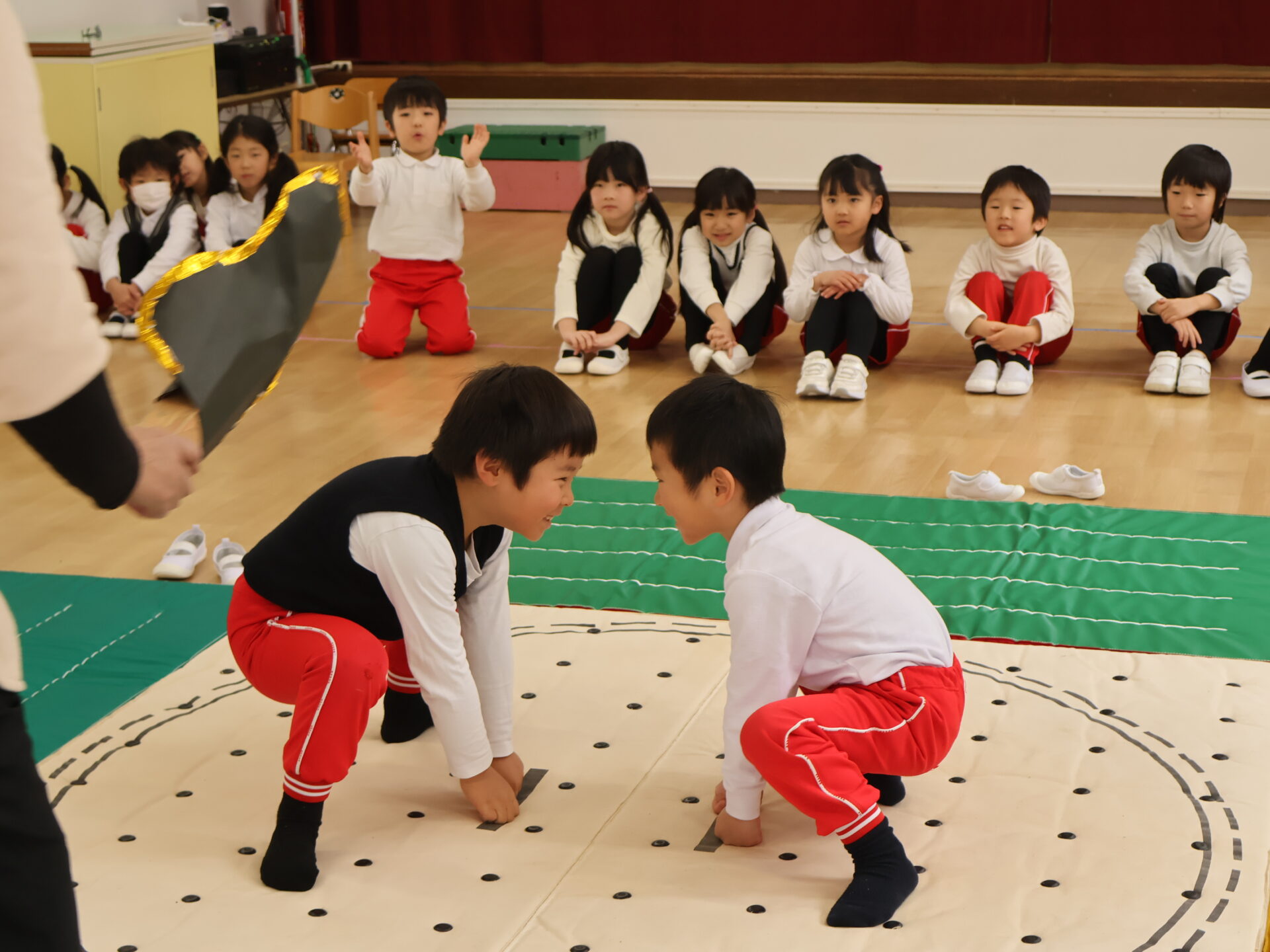 ホーム最近の行事 小相撲 かがようちえん初場所 2026年3月13日 大相撲が話題になり、園でも相撲をしました。 「小相撲 かがようちえん初場所」 やる気満々 兄弟対決も 結びの一番 横綱?対決 「両名さくら部屋 石川県加賀市出身」 見合って!!! 結果は、、、、、、やはりさくら組 迫力がありました。